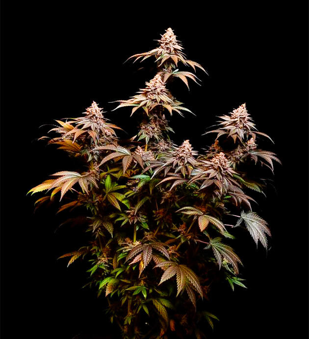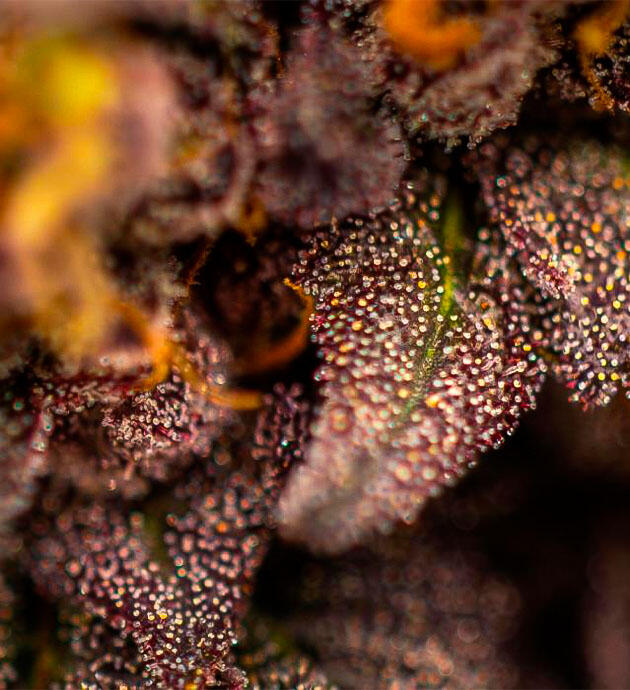 Каннабис с выраженными темными оттенками и плотными соцветиями