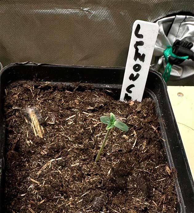 Молодой росток сорта конопли Lemon Cherry Runtz