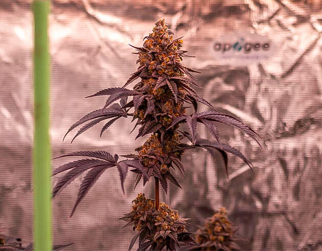Каннабис с увеличенной высотой и началом потемнения листвы